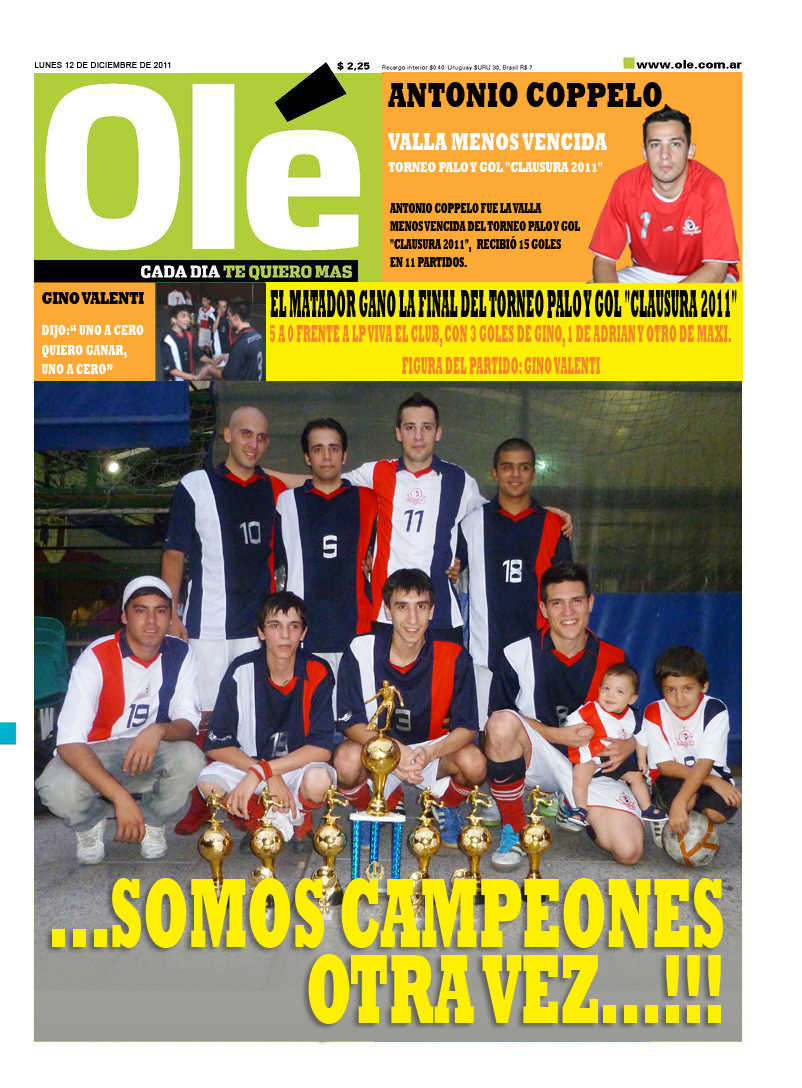 - Matador FutSal Club Campeón del Torneo palo y gol "Clausura" 201111/12/2011 - FINAL